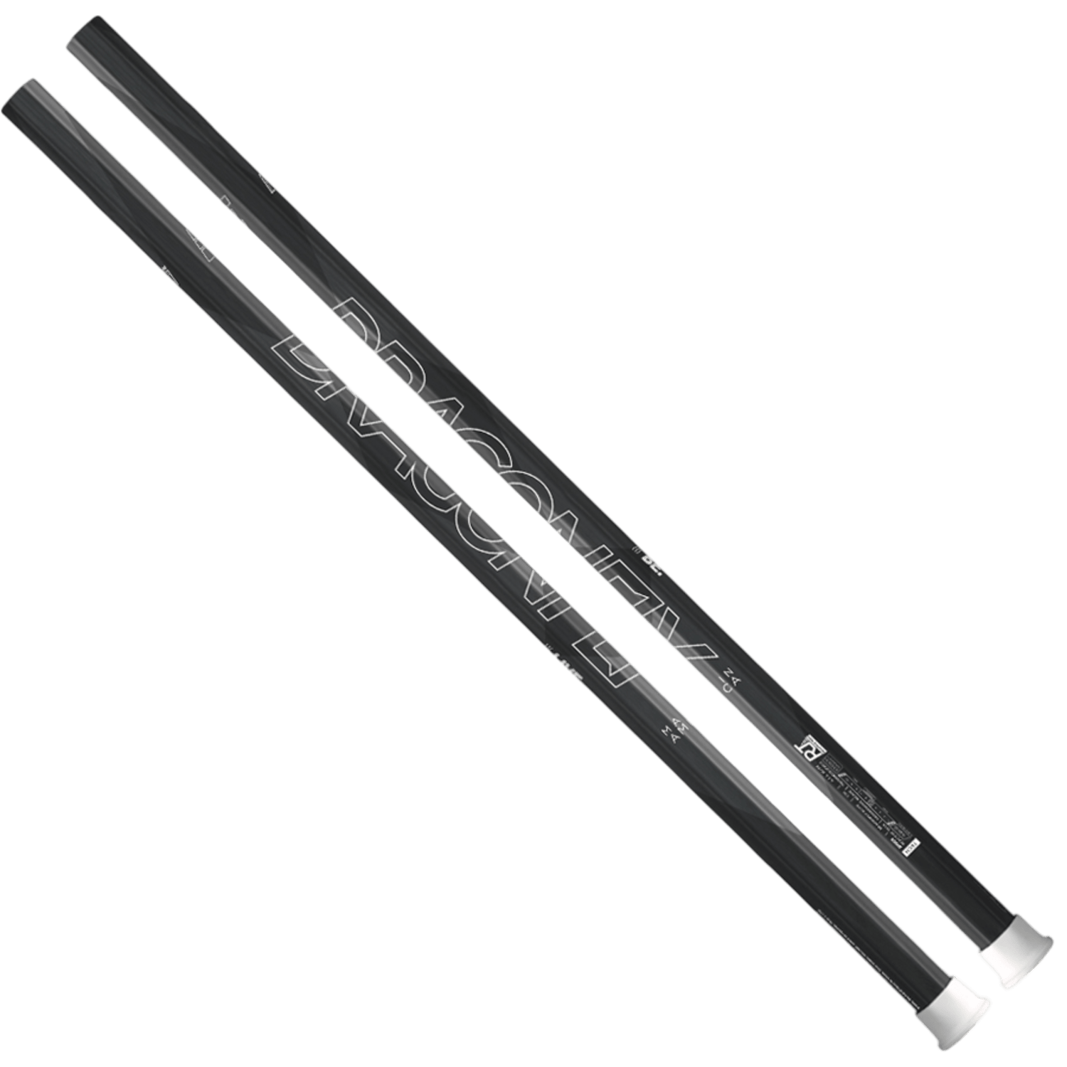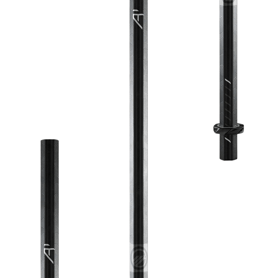 Close-up of a black lacrosse stick head featuring mid-low pocket mesh netting, paired with two lightweight alloy shafts in black. One shaft bears the label "EVO," while the other is branded with "WARRIOR EVO ATTACK." The scene is set against a simple green background. This configuration belongs to the Warrior Evo 2022 Complete Stick by Warrior. The Warrior Evo 2022 Complete Stick by Warrior, seen against a white background, features a black lacrosse stick with a netted head designed with a mid-low pocket. It boasts a lightweight alloy shaft and sports a handle with a matte finish, accented by subtle blue branding near the bottom.