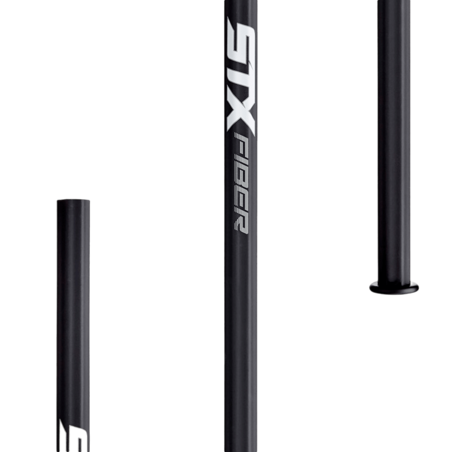 Image of the STX FBRL-A lacrosse shaft in black, featuring "STX" and "Fiber" printed in white lettering. The shaft includes a textured, non-slip grip surface at the bottom and a constant flex profile for optimal performance.