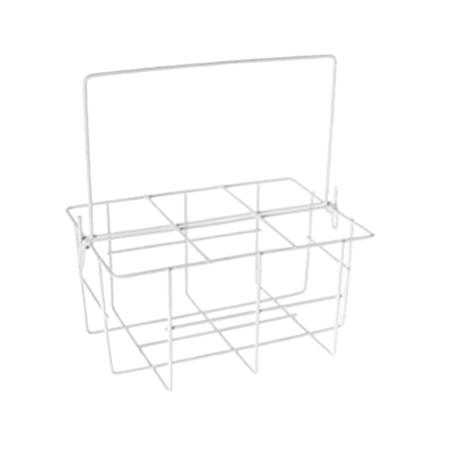 Featuring the Lax.com Water Bottle Carrier, this versatile metal holder includes a handle and several compartments, expertly designed to comfortably fit up to six 16 oz bottles or similar items, and showcased against a simple background.